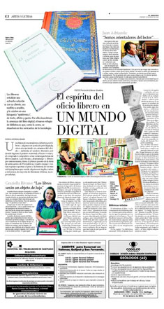 José Manuel y Octavio bosquejan un horizonte auspicioso. En la edición pasada de «Artes y Letras», el agente literario Guillermo Schavelzon aseguró que sólo las grandes editoriales, productoras masivas de sandías caladas, podrán adaptarse al mundo digital, dominado por fabricantes de hardware como Amazon o Sony. ¿Quedará en buen pie, en este panorama, el mundo del librero, aquel del libro roñoso, pero descatalogado; del título antiguo, pero insustituible? La XVIII Feria del Libro Usado del Bicentenario, organizada por la Universidad Mayor y que comenzó el pasado jueves, será el nuevo epicentro de un negocio que tiene más de piel que de balances contables.