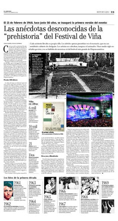 El 21 de febrero de 1960, hace justo 50 años, se inauguró la primera versión del evento. Cada asistente llevaba su propia silla. Los árboles apenas permitían ver el escenario, que era un entablado cubierto de cholguán. Los artistas no cobraban, tampoco el animador. Hace medio siglo no había gaviota y no se hablaba de monstruo ni del festival más grande de Hispanoamérica.