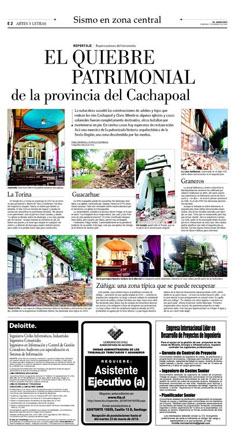 La naturaleza sacudió las construcciones de adobes y tejas que rodean los ríos Cachapoal y Claro. Mientras algunas iglesias y casas coloniales fueron completamente destruidas, otras edificaciones batallan por mantenerse en pie. En algunosciertos casos casos existe la hay esperanza de la restauración. Acá una muestra de la pulverizada historia arquitectónica de la Sexta Región, una zona desatendida por los medios.