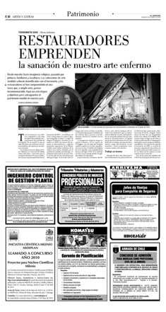 «Chile siempre ha tenido muy buen nivel profesional en el área de la restauración», asegura Luz Barros. Destaca, en este ámbito, la creación de la Asociación Gremial de Conservadores-Restauradores. Gloria Román, presidenta de esta agrupación, cuenta que su nacimiento respondió, precisamente, al aumento en el número de especialistas. «Hoy está conformada por 89 profesionales y técnicos de las diversas áreas que trabajan en la preservación del patrimonio cultural: arqueología, papel, pintura, textil, monumentos, fotografía y, también, del área de las ciencias».Lilia Maturana considera que, si bien nadie podía estar preparado para esta catástrofe, el CNCR ha respondido «de la manera más profesional e inmediata». Macarena Carroza también cree que las dimensiones de la destrucción son inabarcables. «Lo que yo me he dado cuenta en terreno es que hay que hacer una gran investigación de dónde están muchas cosas». En ese sentido, uno de los aspectos positivos del proceso de restauración es la documentación que se generará a partir de las obras recuperadas.