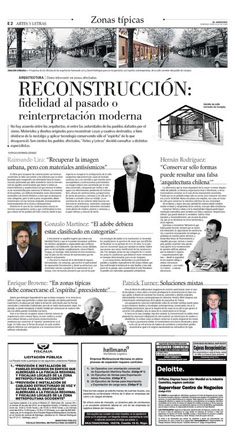 2. Rescatar lo esencial de la identidad de lugares derrumbados. Sin embargo, aprovechar la oportunidad de repensarlos formalmente y desde su estructura, con materiales nuevos a prueba de la mantención en el tiempo. Este terremoto demostró que uno de los peores enemigos del adobe es la mantención, la humedad, las ampliaciones, la apertura de vanos que son difíciles de fiscalizar en un periodo de 20 o 30 años. Si se pensara en reconstruir igual, por ejemplo en adobe, habría que pensar una nueva clasificación de las construcciones. Por ejemplo, serían de una categoría B o C (como los autos no catalíticos), que debieran tener revisiones en tiempos determinados, para no ser riesgosos.