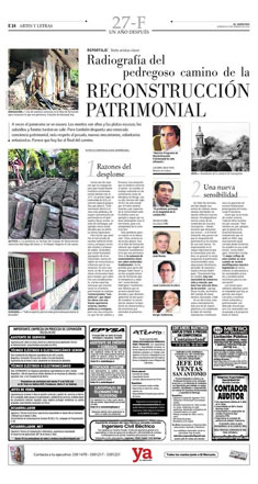Claro que no se trata de cantar victoria. Todavía falta muchísimo por avanzar. «Mal síntoma es, por ejemplo, que la iglesia de la Gratitud Nacional, monumento que se dañó en 1985, siga exactamente igual, cerrada desde entonces. Su nombre es una cruel ironía», acota Rodríguez. Como dice Acuña, «el mejor reflejo de este cambio se verá cuando de verdad modifiquemos nuestra legislación de monumentos, la adecuemos a las necesidades actuales y establezcamos incentivos para la conservación».