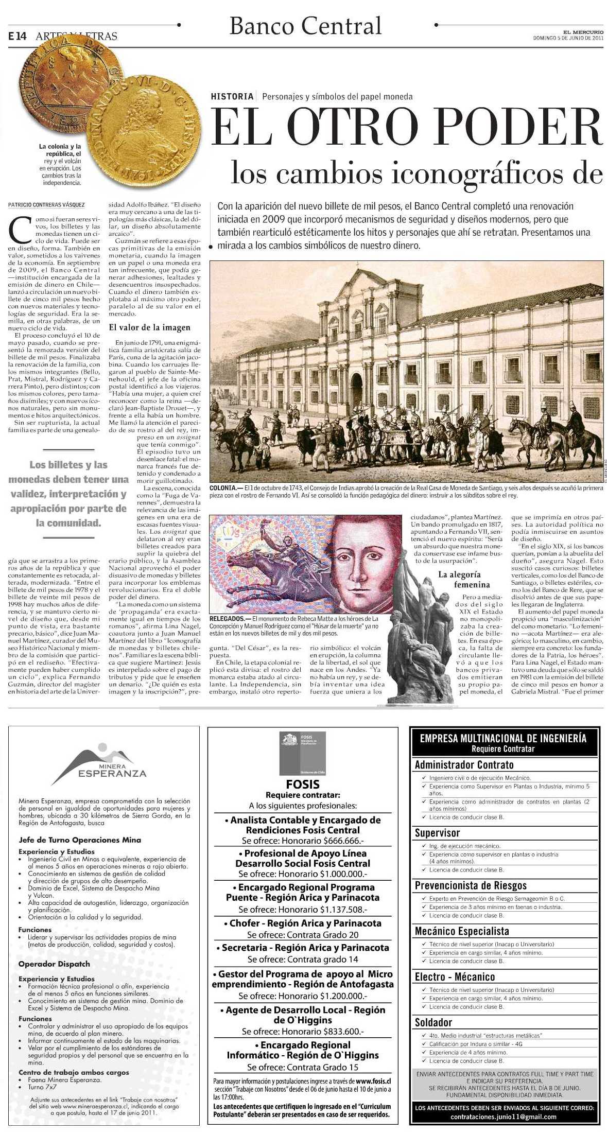 Sin ser rupturista, la actual familia es parte de una genealogía que se arrastra a los primeros años de la república y que constantemente es retocada, alterada, modernizada. «Entre el billete de mil pesos de 1978 y el billete de veinte mil pesos de 1998 hay muchos años de diferencia, y se mantuvo cierto nivel de diseño que, desde mi punto de vista, era bastante precario, básico», dice Juan Manuel Martínez, curador del Museo Histórico Nacional y miembro de la comisión que participó en el rediseño. «Efectivamente pueden haber cumplido un ciclo», explica Fernando Guzmán, director del magíster en historia del arte de la Universidad Adolfo Ibáñez. «El diseño era muy cercano a una de las tipologías más clásicas, la del dólar, un diseño absolutamente arcaico».