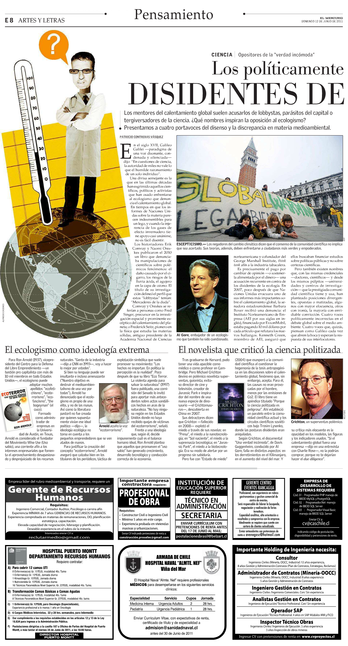 Una divisa semejante es la que en las últimas décadas han esgrimido aquellos científicos, políticos y activistas que han osado enfrentarse al ecologismo que denuncia el calentamiento global. En tiempos en que los informes de Naciones Unidas sobre la materia parecen indesmentibles para un lego, y cuando la injerencia de los gases de efecto invernadero tiene apoyo casi unánime, no es fácil disentir.