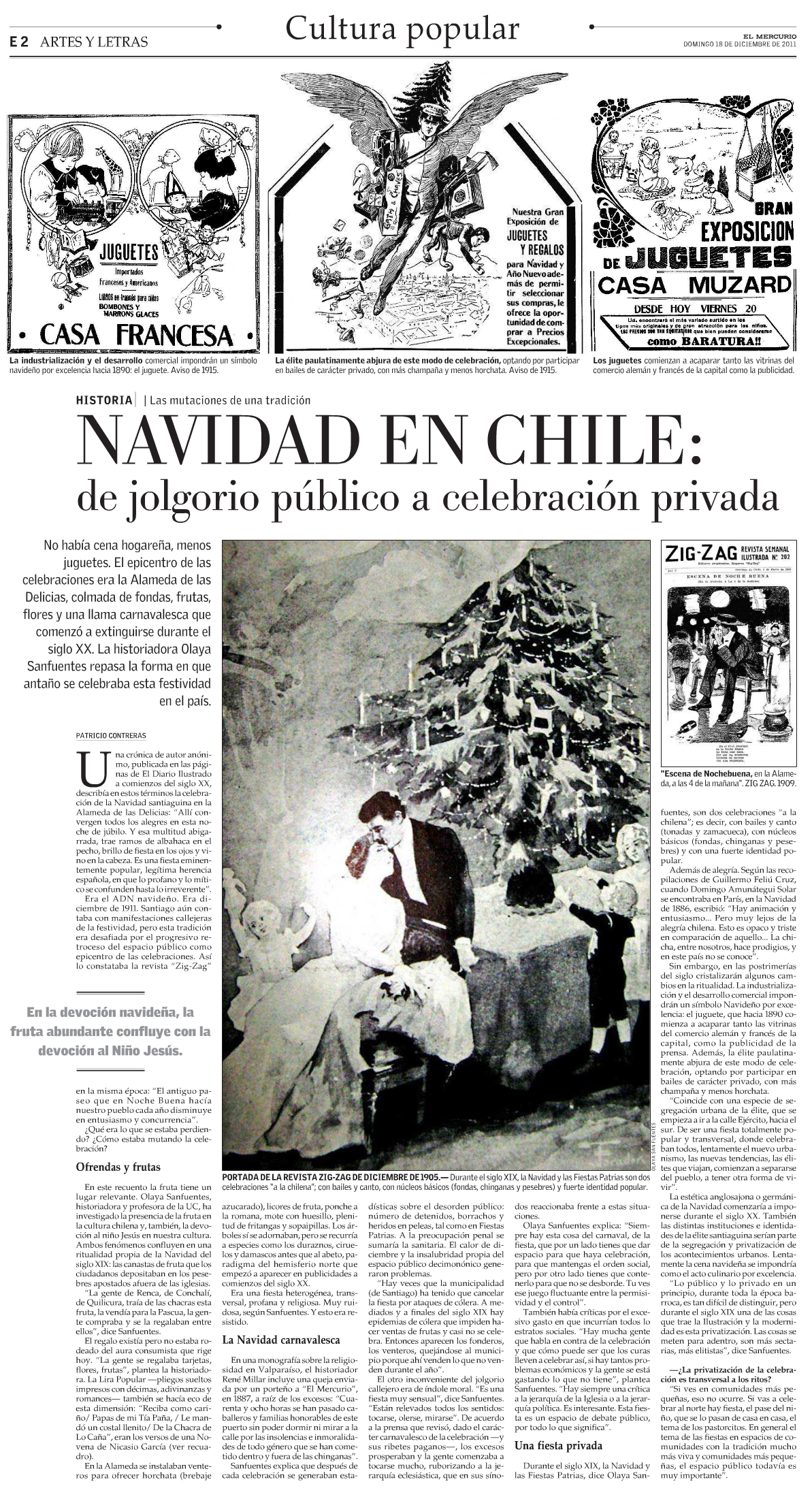 Era el ADN navideño. Era diciembre de 1911. Santiago aún contaba con manifestaciones callejeras de la festividad, pero esta tradición era desafiada por el progresivo retroceso del espacio público como epicentro de las celebraciones. Así lo constataba la revista Zig-Zag en la misma época: «El antiguo paseo que en Noche Buena hacía nuestro pueblo cada año disminuye en entusiasmo y concurrencia».