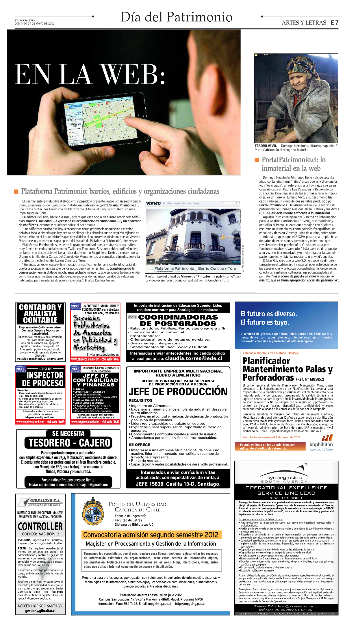 Pero más allá de esta actividad que se realiza todos los años, existen otros portales que aportan diariamente a este tema. Aquí destacamos algunos sitios web que, valiéndose de los mejores atributos de la web 2.0 —social, multimedial y colaborativa—, han logrado generar espacios de difusión, reflexión e interacción con el patrimonio, tanto material como inmaterial.